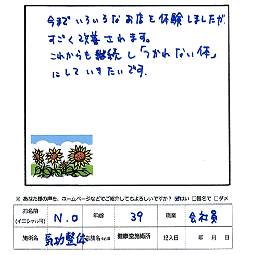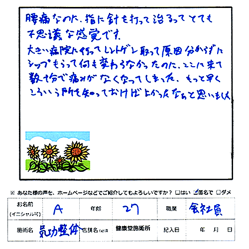腰痛が改善しました。(口コミ評判:知立市在住)