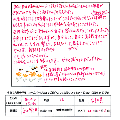 自分らしさを取り戻しています。(口コミ評判:刈谷市在住)