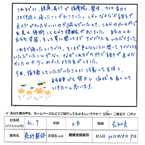 今まで、色々な整体に行ったことがありますが、一度としてその場で良くなったと