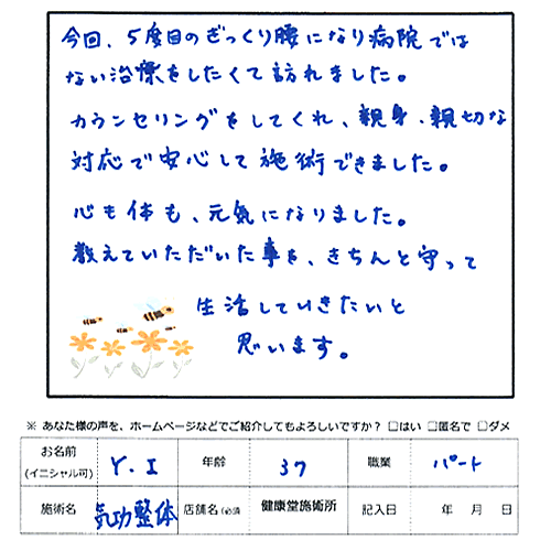 ぎっくり腰が楽になった。(口コミ評判:岡崎市在住)